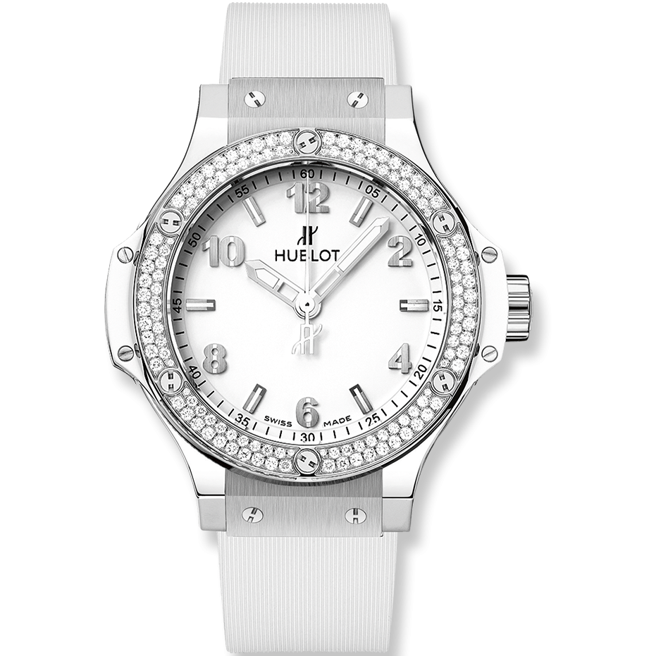 Hublot luôn khiến khách hàng của mình bất ngờ khi tung ra những sản phẩm cực kì đẹp mắt, cuốn hút và độc đáo. Sản phẩm lần này gọi tên chiếc đồng hồ danh giá Hublot Big Bang Steel White Diamonds với kích thước mặt 38mm. Thiết kế tinh tế sang trọng cùng tông màu trắng chủ đạo cho thấy sức sáng tạo tuyệt vời đến từ nhà Hublot.