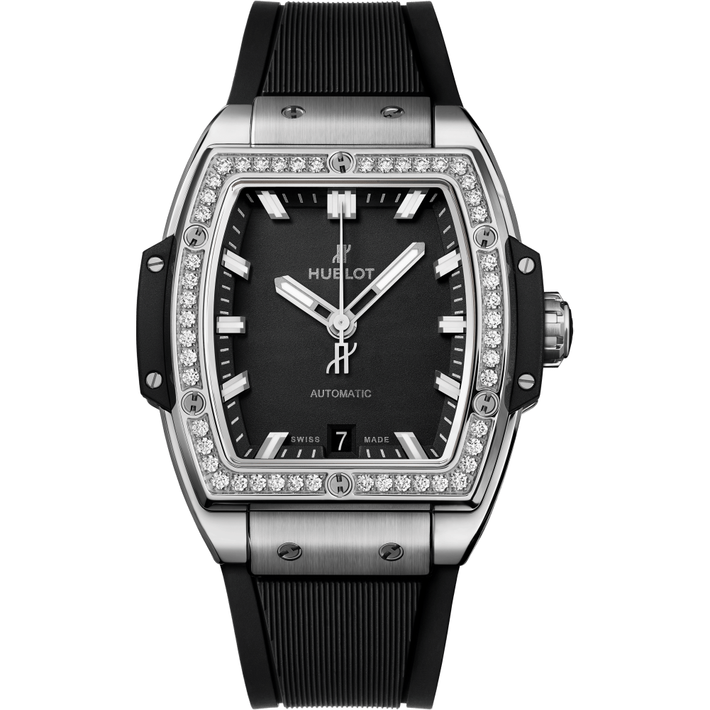 Hublot Spirit Of Big Bang Titanium Diamonds Automatic 39mm thuộc dòng sản phẩm Spirit Of Big Bang trứ danh với những chiếc đồng hồ tuyệt đẹp mang kiểu dáng tonneau. Chiếc đồng hồ mang đến hơi thở mới lạ cho công chúng yêu đồng hồ với đường nét cổ điển đặc trưng phảng phất sự hiện đại của cơ học.